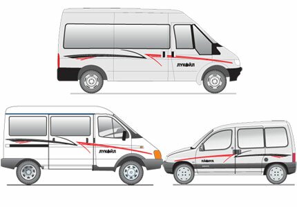 Сотрудничество с Лукойл-Авиа началось с 2000 г. работами по маркировке пленками самолетов. Утвержденные в мае 2001 г., созданные нами как пилотные, новые логотип и схема окраски для Falcon-900, так понравились заказчику, что с тех пор все самолеты и некоторые вертолеты авиакомпании летают в новой ливрее. Причем, несколько самолетов Як-40, Як-42 и Вае-125 перемаркированы нами пленками после окраски в белый цвет.