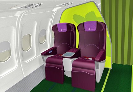 На авиасалоне в Ля Бурже было объявлено, что подписан контракт на поставку 25 новых А-320 и с апреля 2008 эти самолеты начнут поступать в парк S7 Airlines. Как мы уже сообщали, при подготовке к этому контракту Сибирь привлекла нашу компанию для проработки новых вариантов отделки интерьера для А-320. Варианты отделки интерьера продемонстрированные в виде компьютерной симуляции на нашей 3D-модели интерьера этого самолета, послужили основой для S7 Airlines при выборе окончательного варианта декорирования интерьера новых А-320-х. И в бизнес классе и в экономе для чехлов кресел планируется применить кожу. Право представить общественности заказанный Эйрбасу декор интерьера для А-320 за авиакомпанией, а мы предлагаем варианты послужившие прототипами.